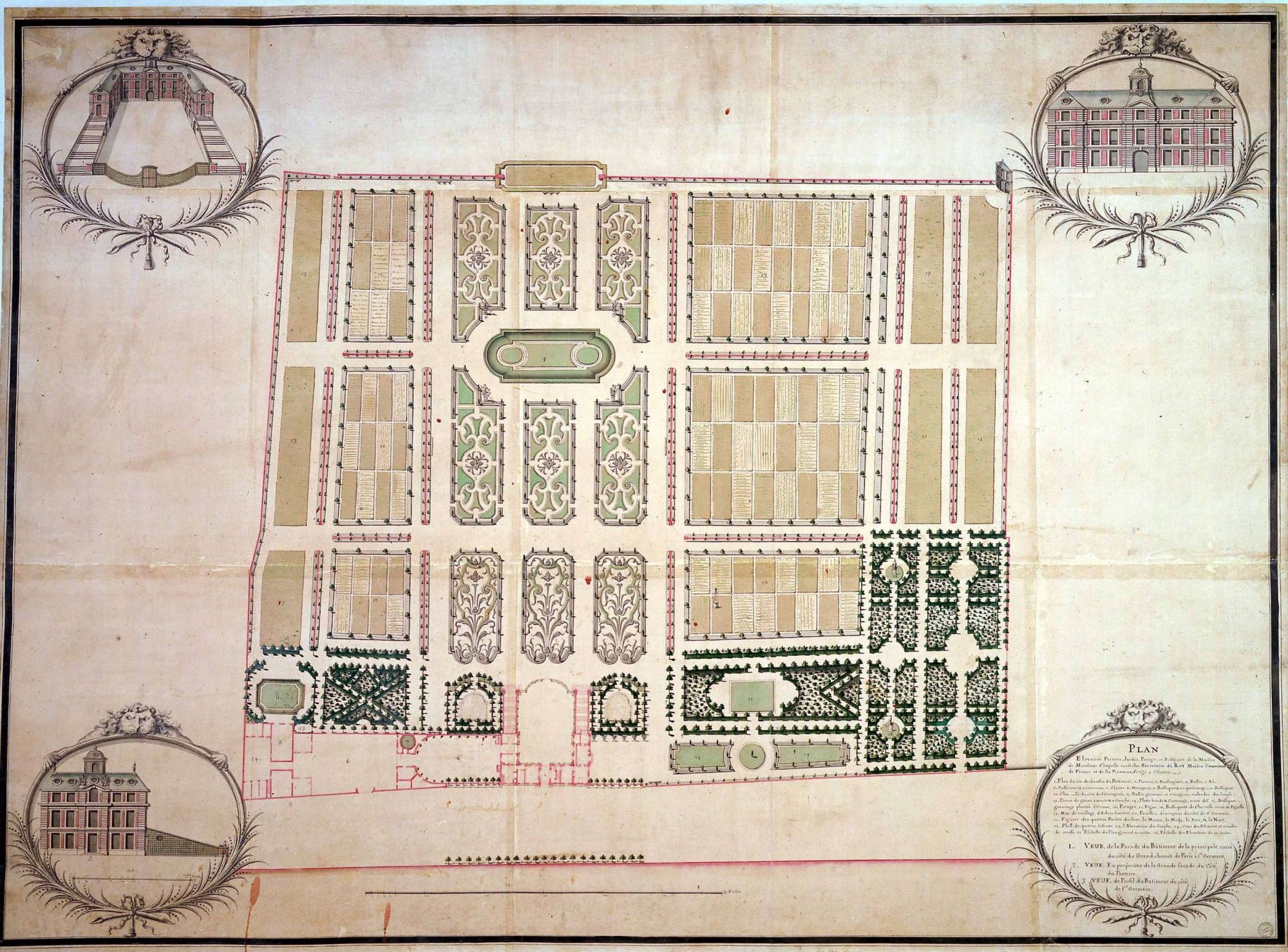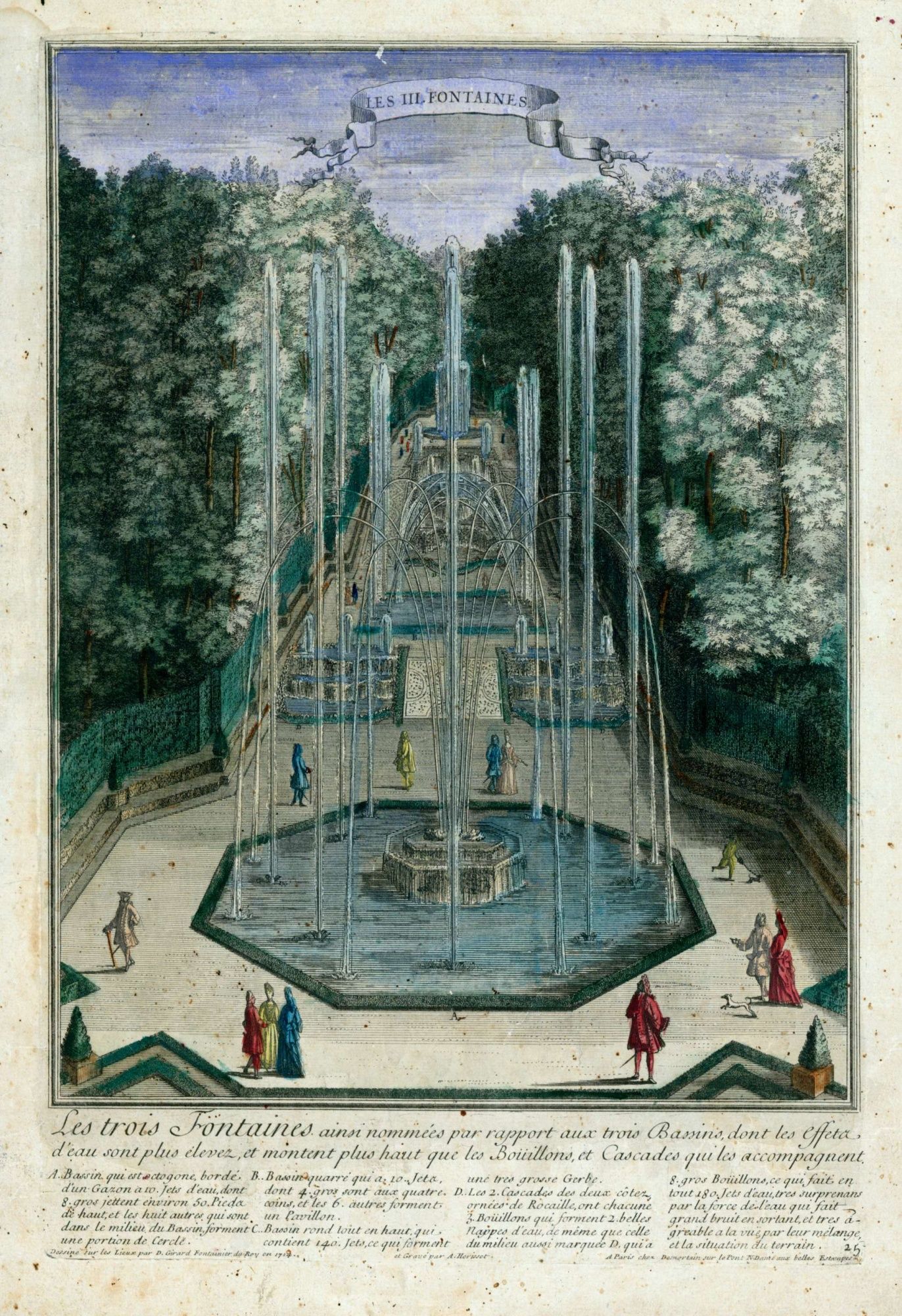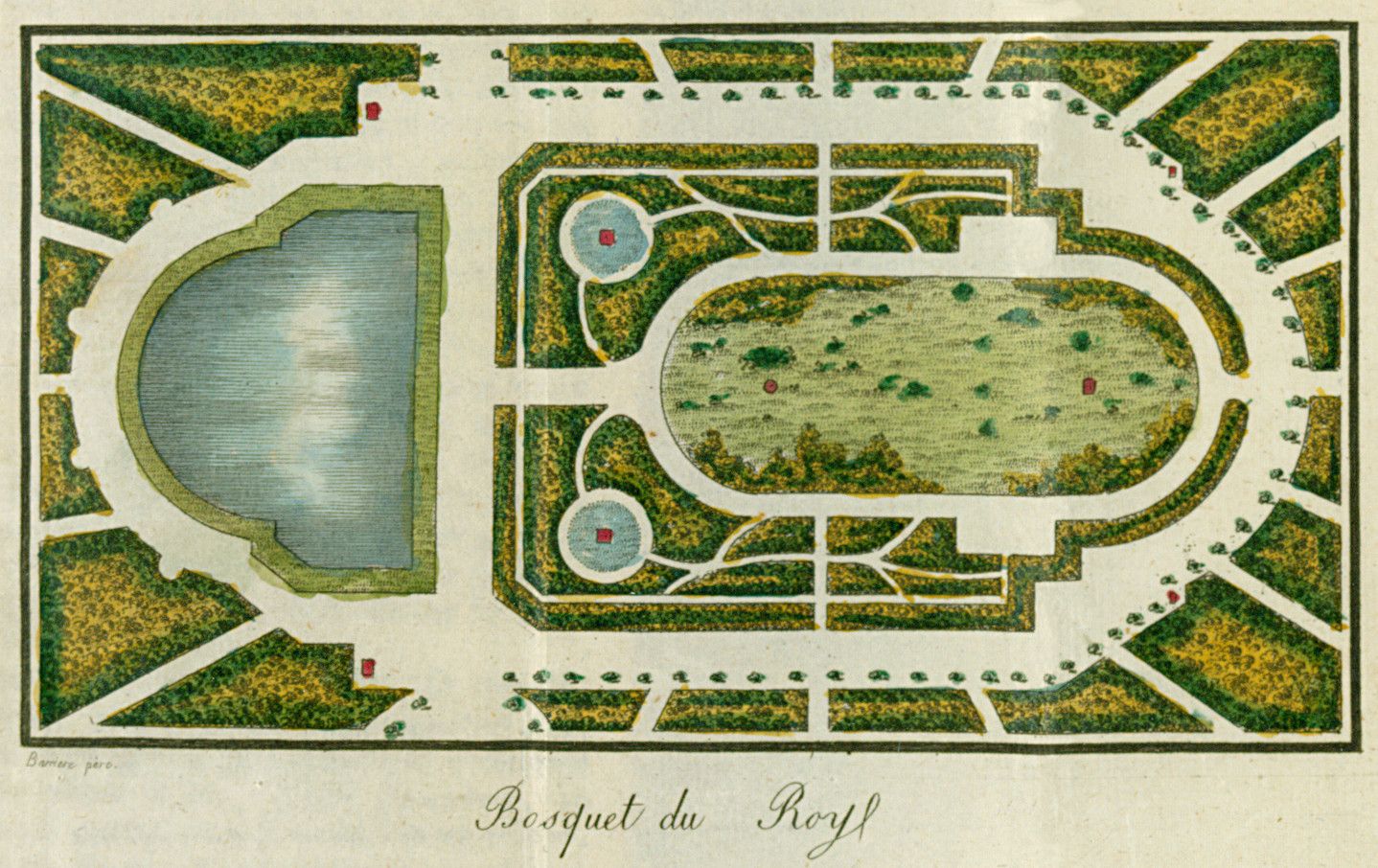 Les progrès des sciences introduisent au XVIIè siècle une nouvelle conception de l’espace et du jardin construit selon les principes de la perspective et dont la structure d’ensemble apparaît clairement d’un point élevé (en général la terrasse du château). Les jardins à la française sont selon Richelieu les « jardins de l’intelligence ». A l’organisation géométrique des parterres et des broderies répondent les jeux d’eau des bassins et fontaines. Les formes antiquisantes sont privilégiées, tant dans les architectures (colonnades, templions…) que dans les sculptures décoratives qui parsèment les jardins à la française, et dont Versailles sera le modèle incontournable.