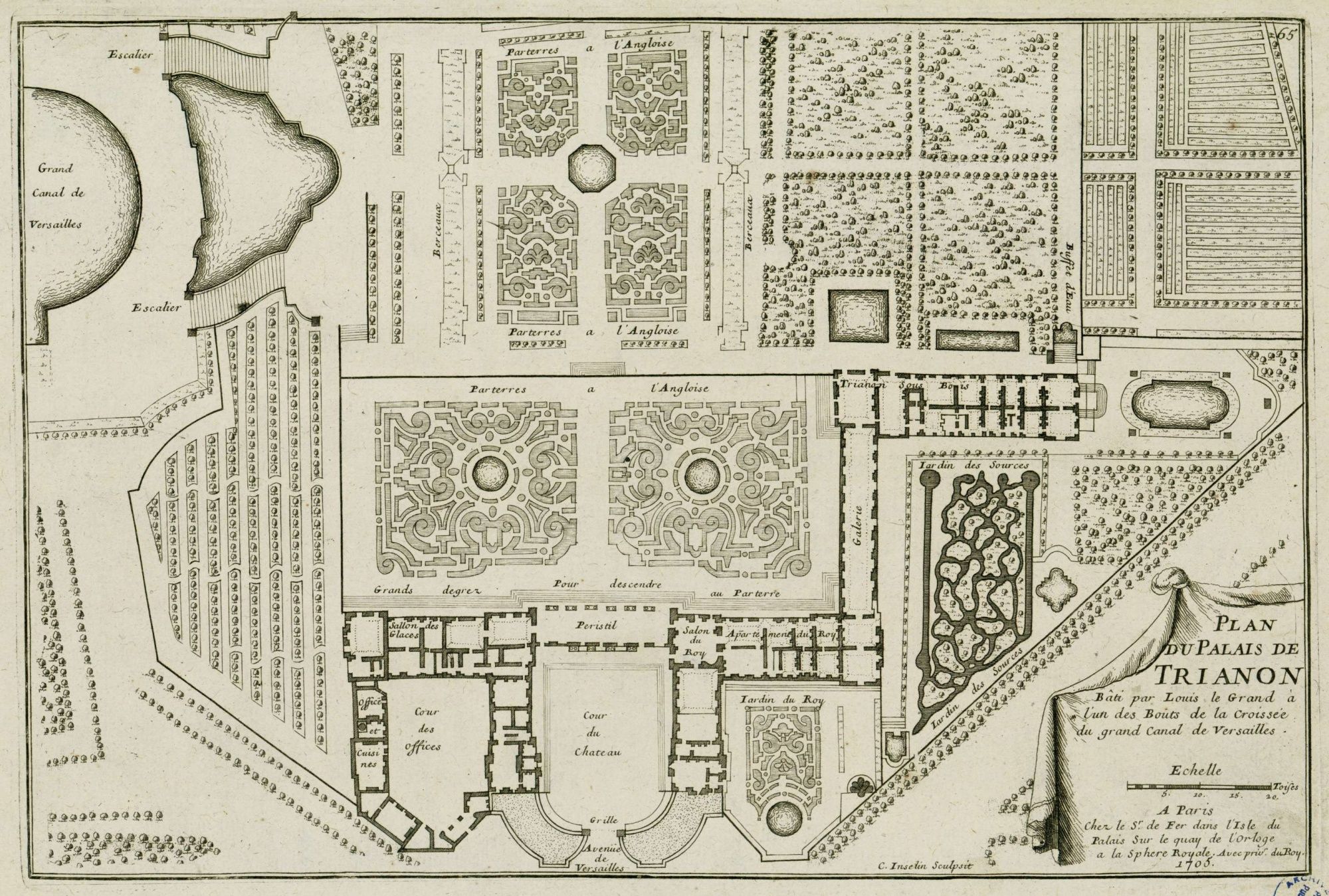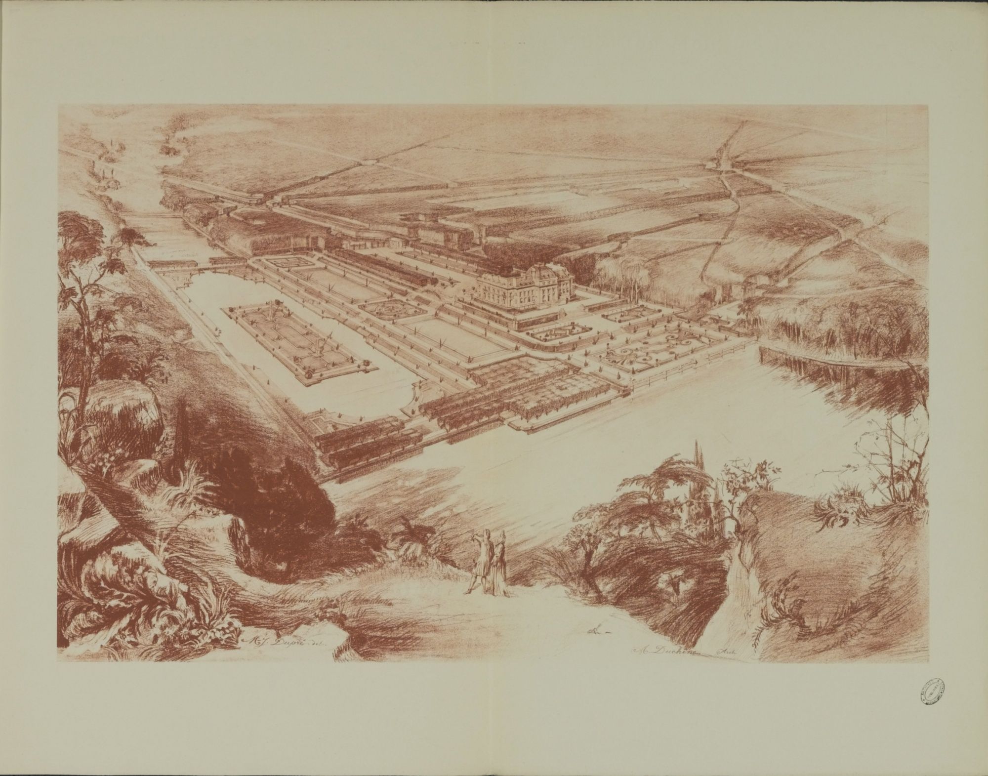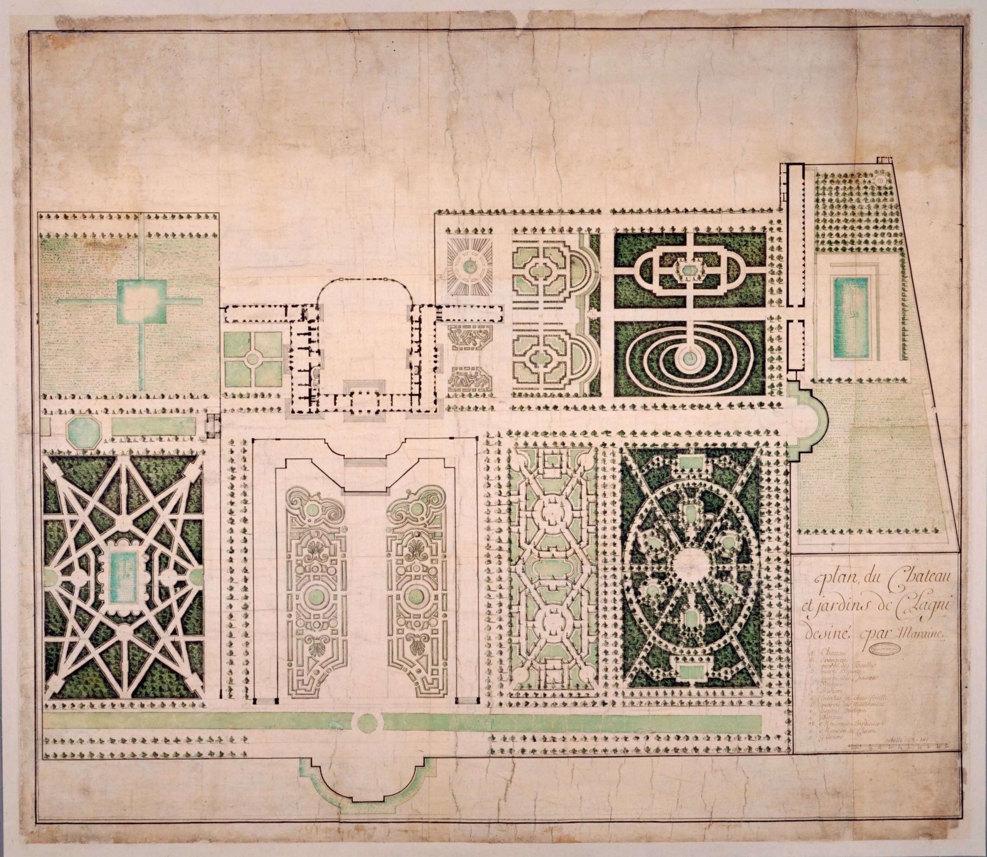 Les progrès des sciences introduisent au XVIIè siècle une nouvelle conception de l’espace et du jardin construit selon les principes de la perspective et dont la structure d’ensemble apparaît clairement d’un point élevé (en général la terrasse du château). Les jardins à la française sont selon Richelieu les « jardins de l’intelligence ». A l’organisation géométrique des parterres et des broderies répondent les jeux d’eau des bassins et fontaines. Les formes antiquisantes sont privilégiées, tant dans les architectures (colonnades, templions…) que dans les sculptures décoratives qui parsèment les jardins à la française, et dont Versailles sera le modèle incontournable.