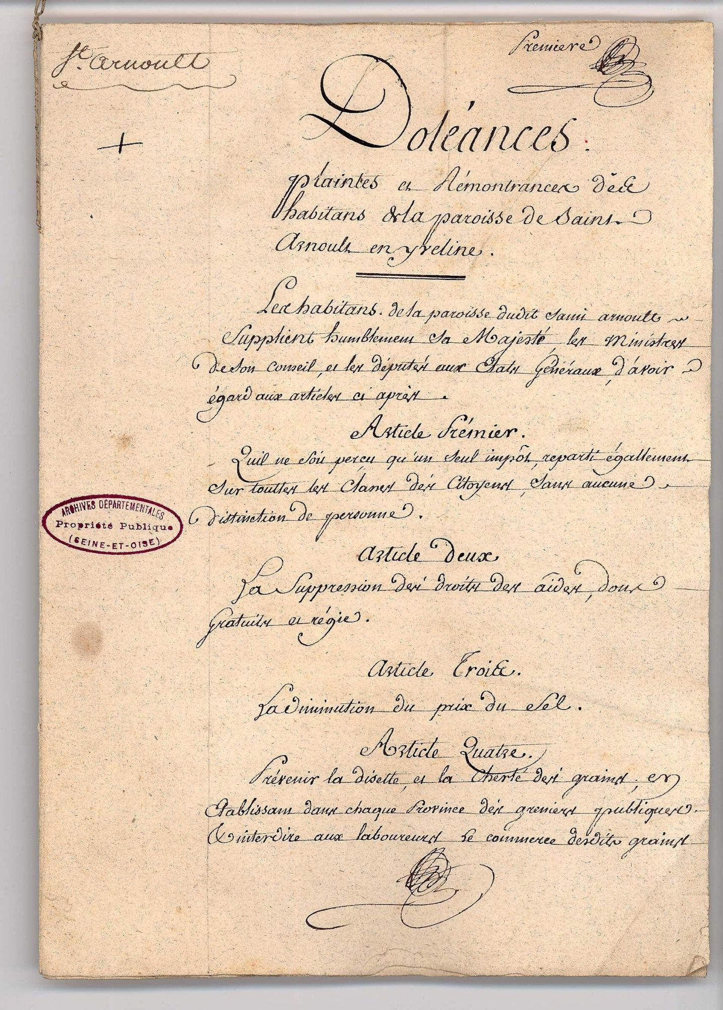 Les cahiers de doléances