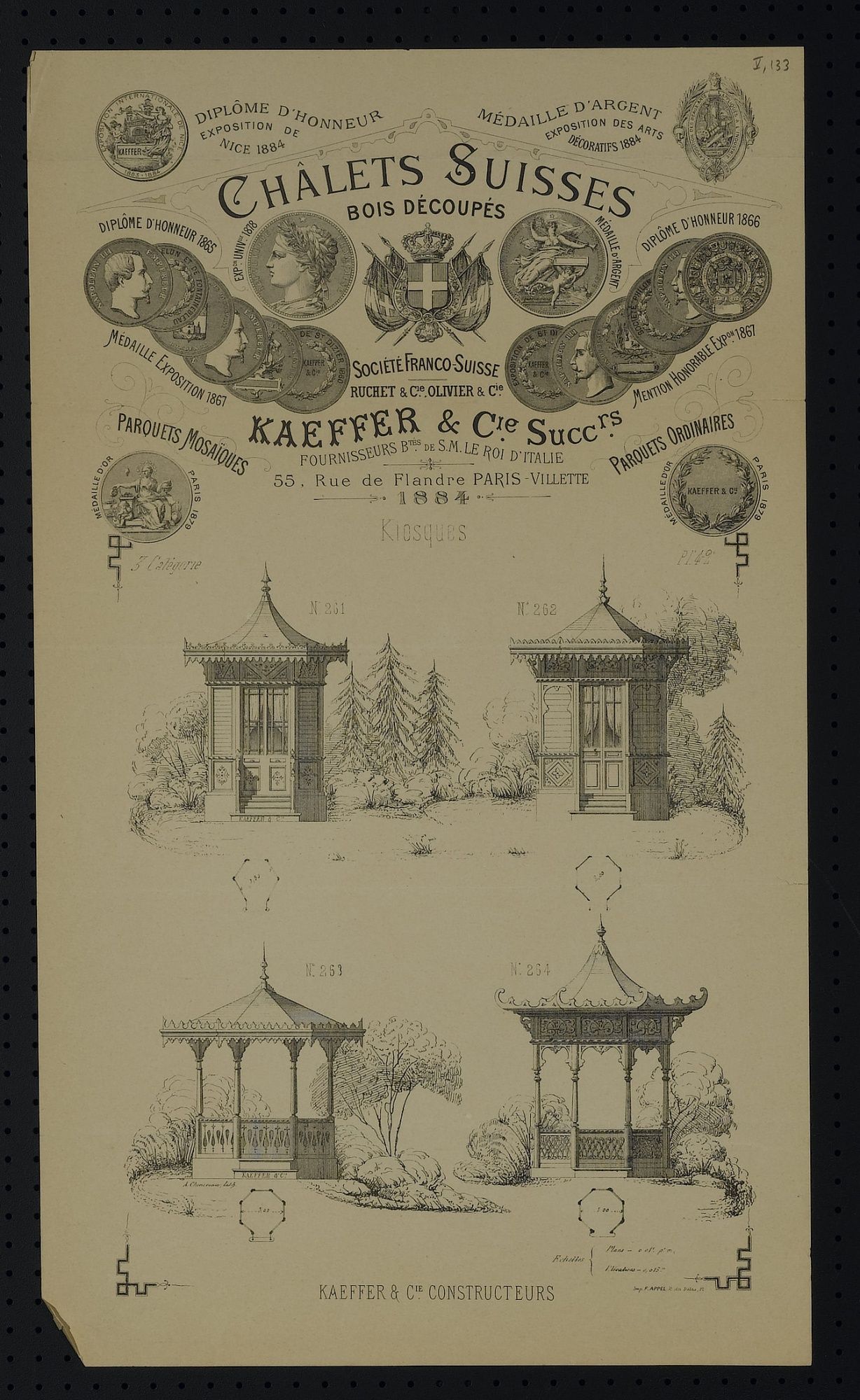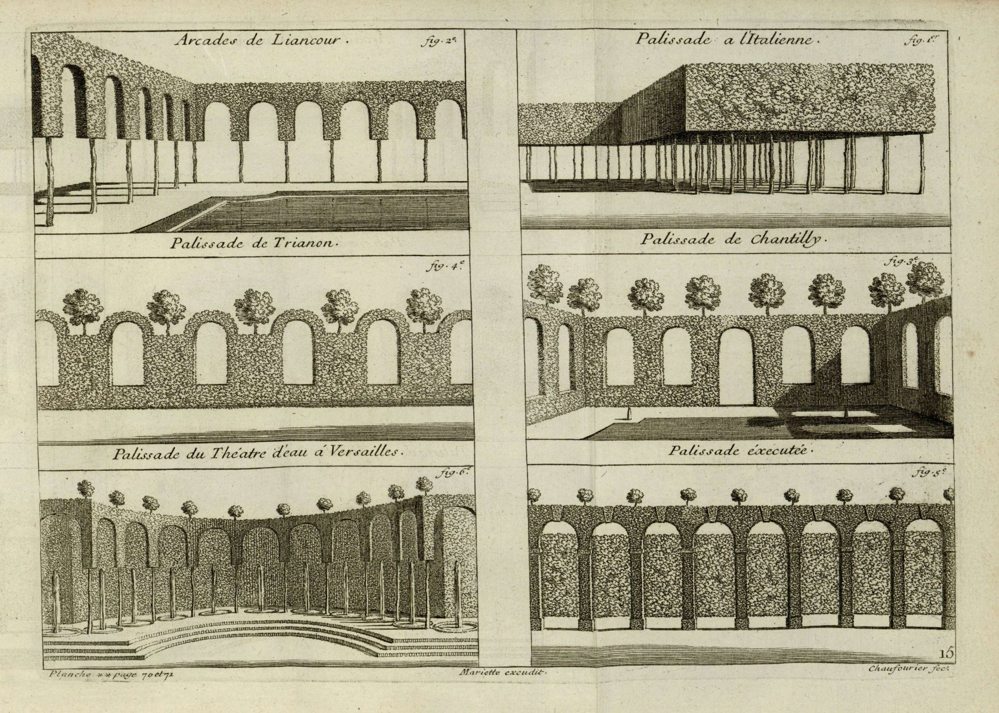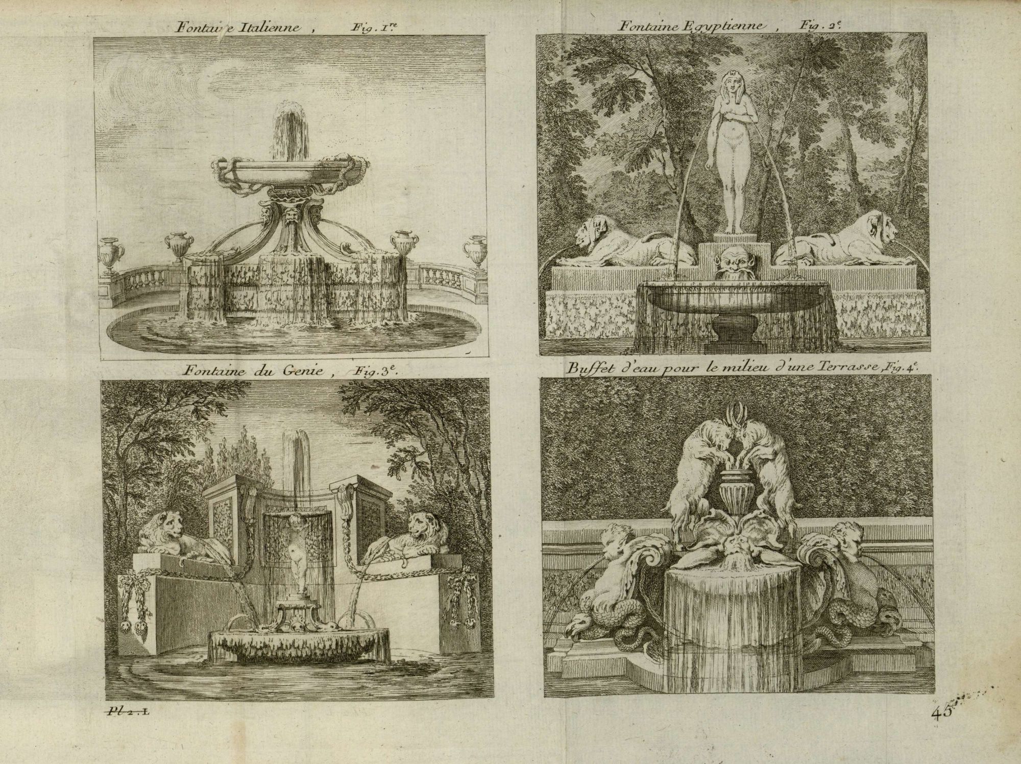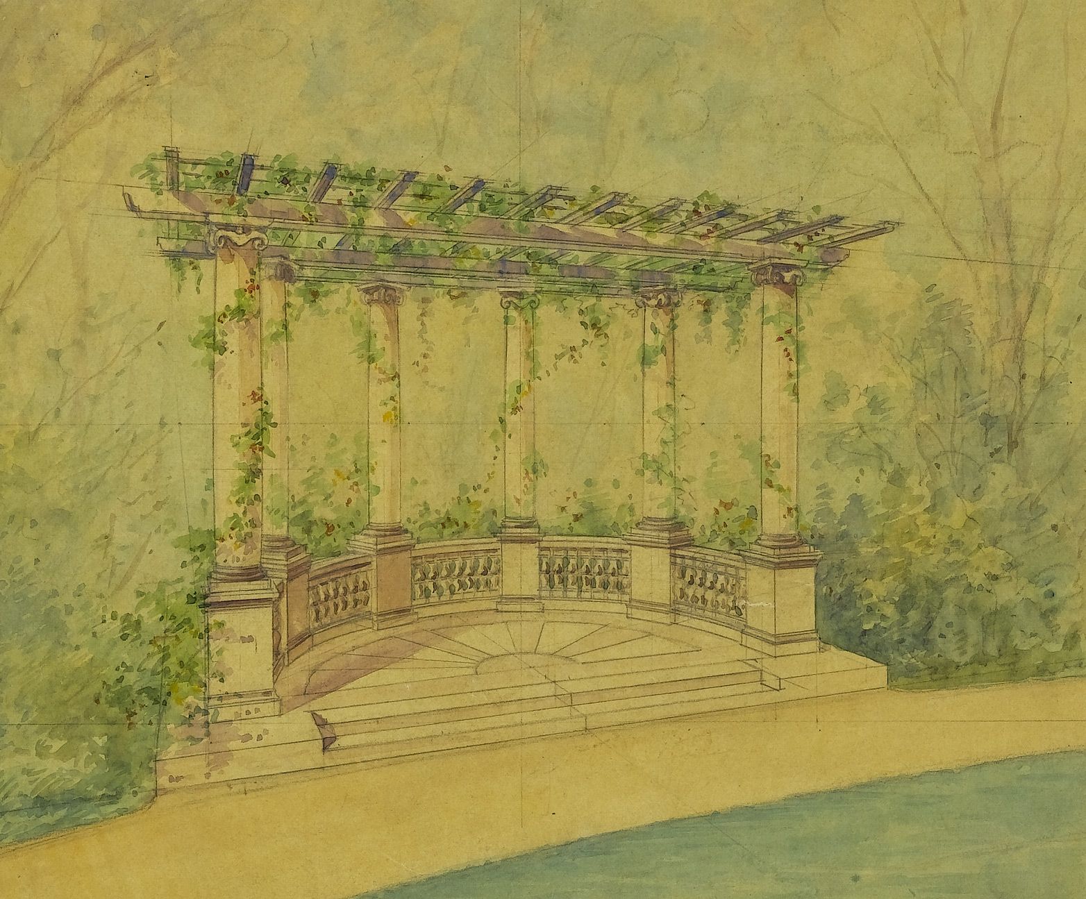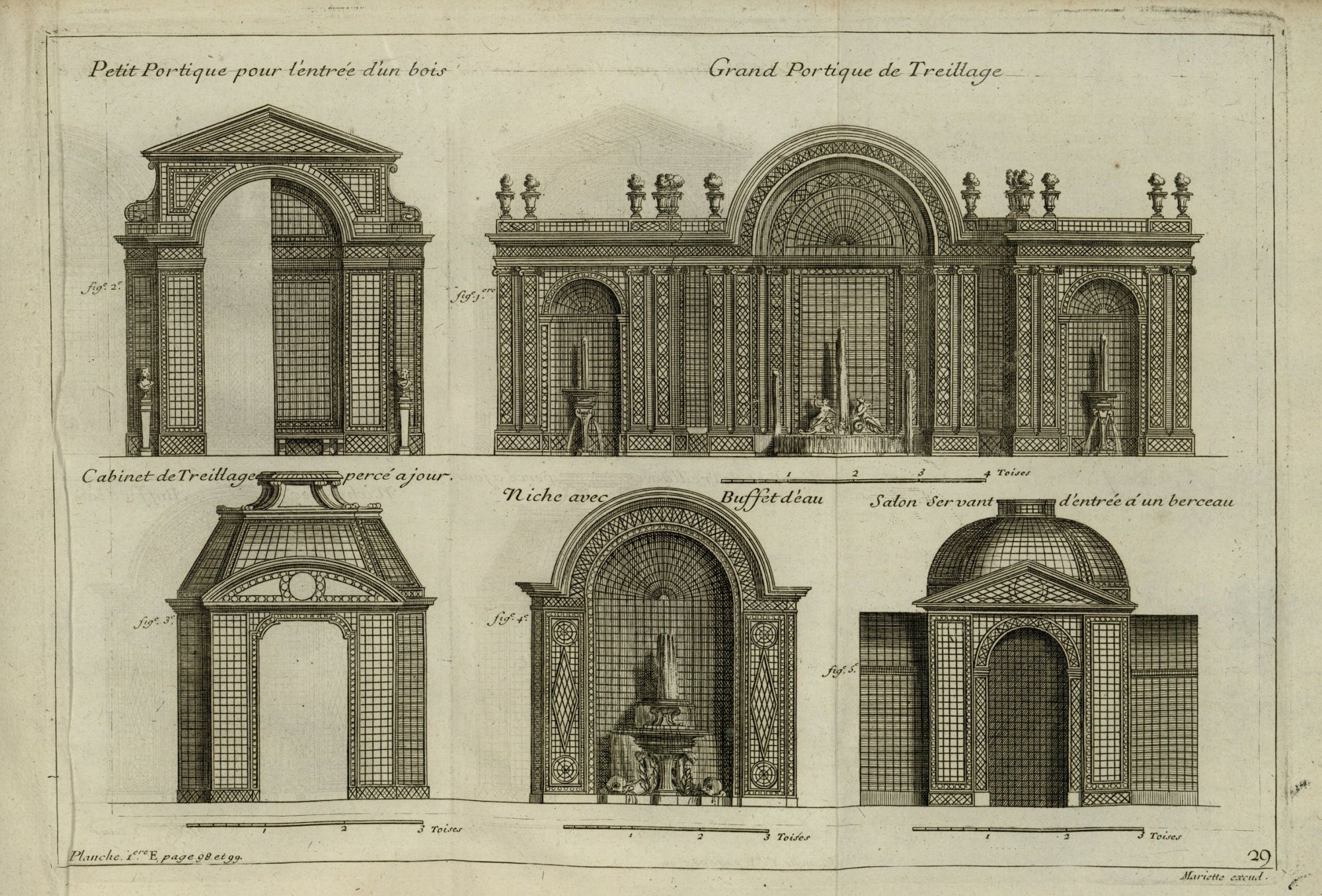 Dès l’apparition du jardin à la française, la décoration des jardins devient primordiale. Palissades, fontaines, statues, colonnes se déclinent à l’envi dans les jardins à la française. Avec la mode des jardins à l’anglaise, le mobilier de jardin s’enrichit bientôt de kiosques et de belvédères plus ou moins exotiques. Au XIXème siècle, ces aménagements font l’objet des premiers catalogues de vente, signe que la clientèle s’est étendue et démocratisée.