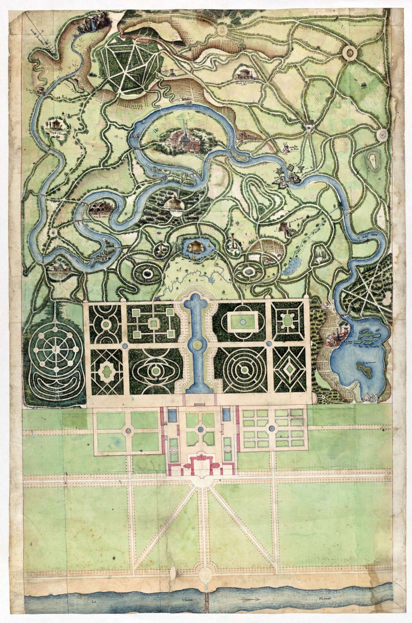 Né en Angleterre au début du XVIIIè siècle, le parc à l’anglaise est le « jardin de l’homme sensible » (Michel Baridon). Allées sinueuses, petits ponts et rivières artificielles, grottes et rocailles, massifs boisés ou fleuris donnent au jardin anglais l’apparence de la nature.